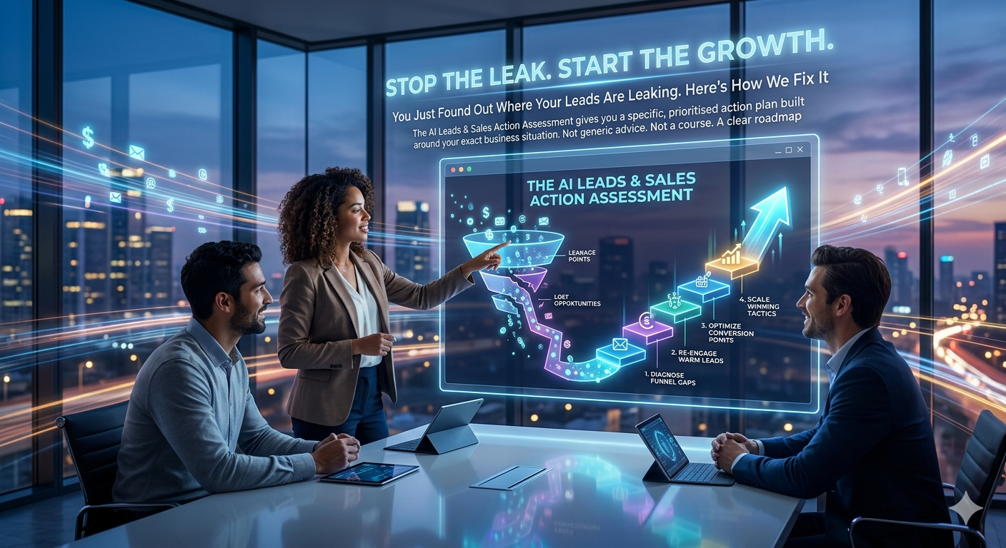 The AI Leads & Sales Action Assessment gives you a specific, prioritised action plan built around your exact business situation. Not generic advice. Not a course. A clear roadmap